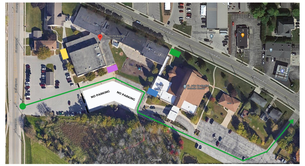 - Please meet your child’s teacher by the door and walk with your child to your parked car to ensure safety near the moving lines of traffic.